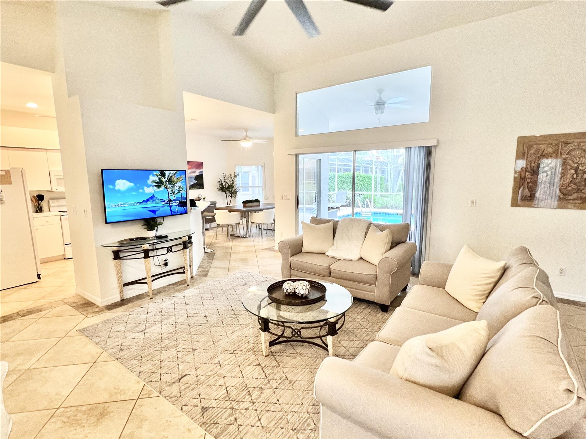 Naples House with a Private Heated Pool and Lake Views, Sleeps 8 . Single story, Minutes to Beaches, Golf, Restaurants and Shopping. Access to Another Community Pool and Spa.Light, Open and Airy